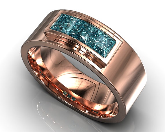 Mens Rose Gold Ring Mens Wedding Band Aquamarine Mens Band Etsy
